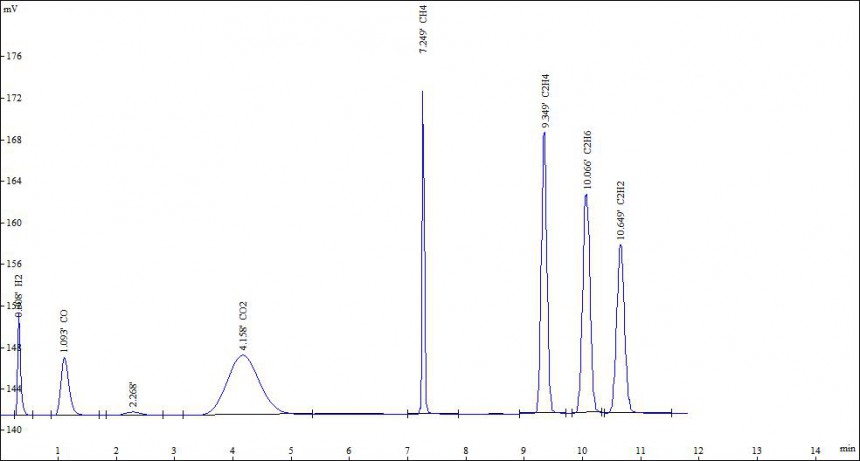 7、一次进样,七组份峰出在同一张谱图上,操作简便。