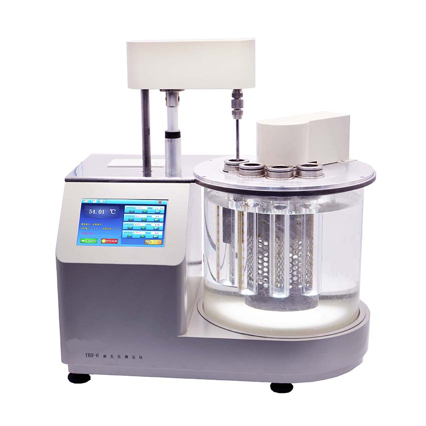 YRH-6型破乳化测定仪是一款国内自动化程度高的破乳化度测定仪,主要用于测定在标准条件下石油合成液与水分离的能力。YRH-6型破乳化测定仪采用松正智能模糊逻辑+PID的复合控温方法,控温精度可达0.02℃,控温速率快,精度高。YRH-6采用智能型无刷电机作为油样搅拌电机,无碳刷摩擦,具有超低噪音、寿命长的特点。YRH-6将客户体验价值作为产品设计的首要的衡量价值贯彻产品设计的始终,在同类产品中拥有的客户体验度,是市场同类产品的理想更新换代产品。